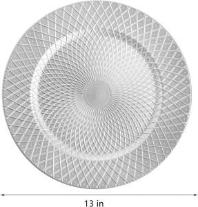 13" ACRYLIC DIAMOND PATTERN CHARGER PLATE- silver