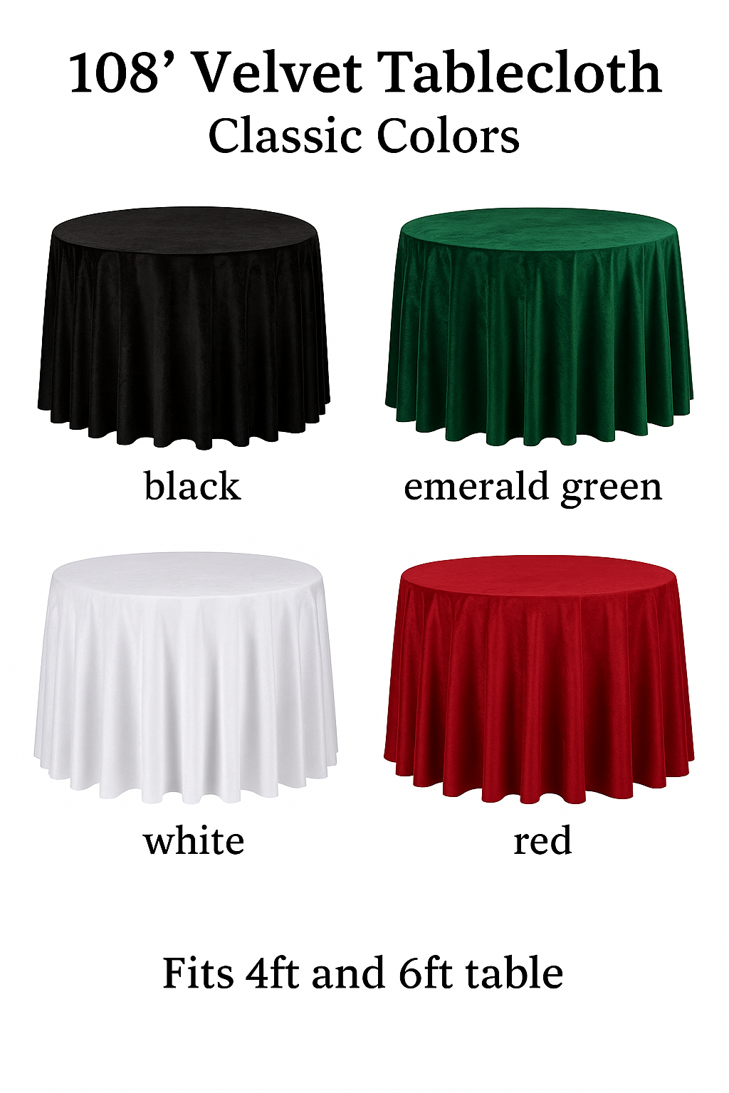Elevate your holiday celebration with the luxurious look and feel of our 108-inch Velvet Tablecloths. Designed to transform any round table into a warm, festive, and elegant focal point, these tablecloths are the perfect choice for Christmas parties, New Year gatherings, winter dinners, corporate events, and intimate holiday celebrations.
