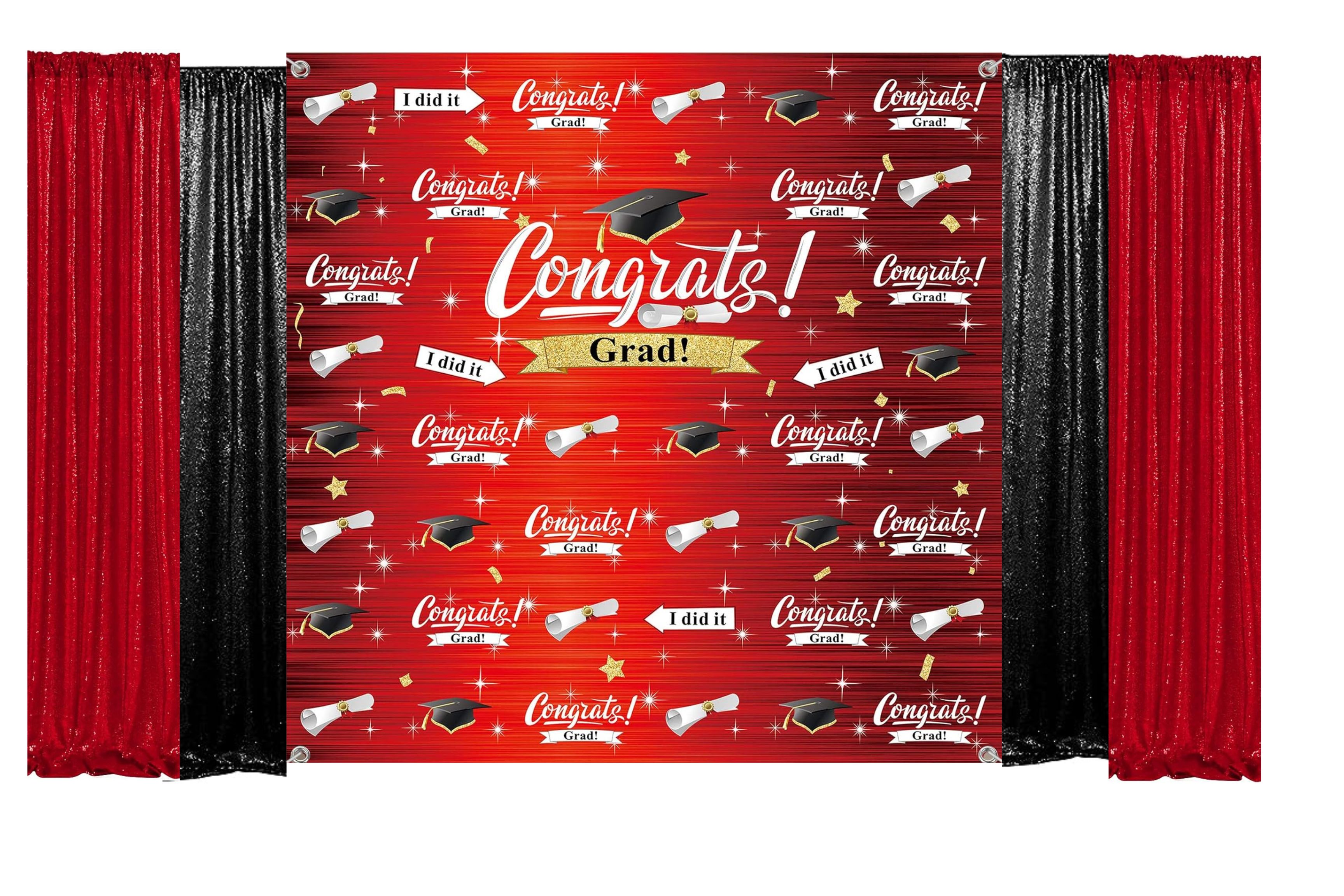 - Perfect for small graduation celebrations and quick photo moments.Package Includes• 8ft x 8ft Graduation Backdrop