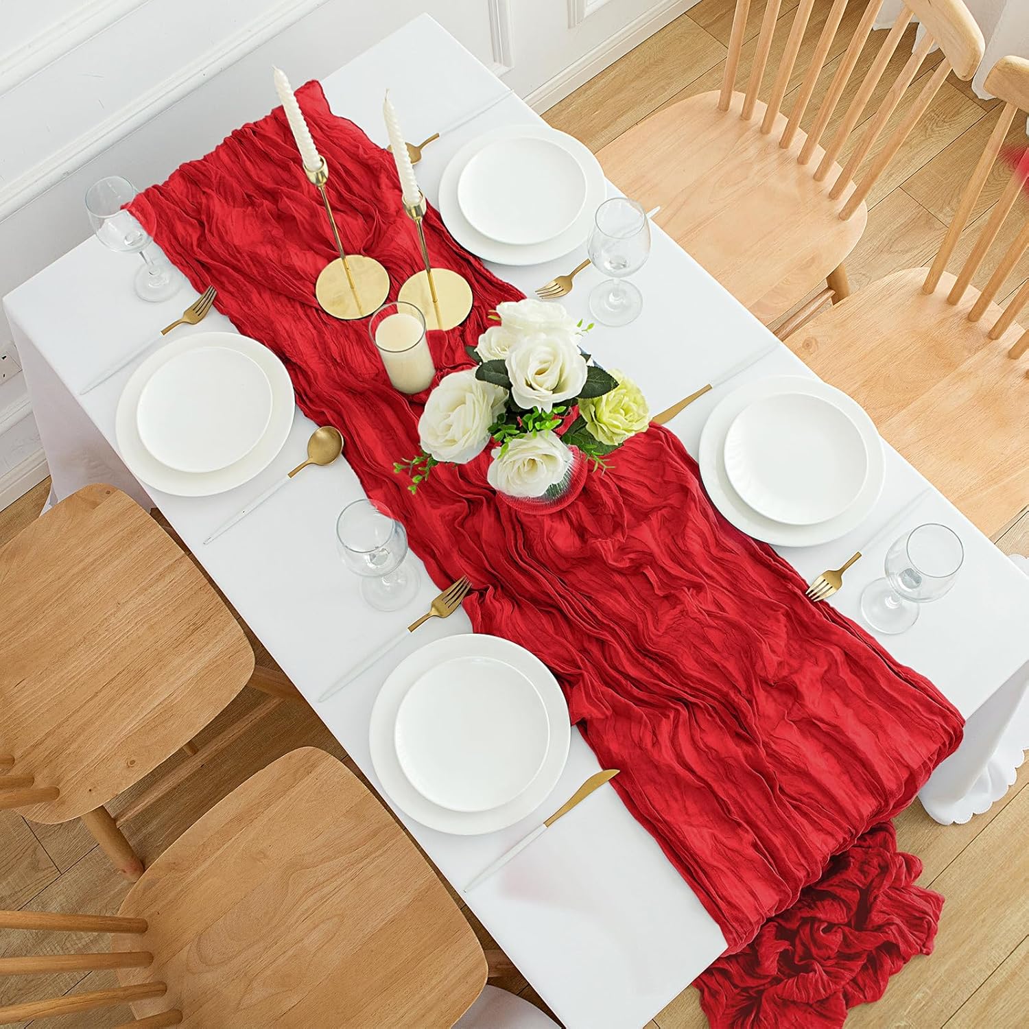 Reserve your Red Cheesecloth Table Runner today and transform your table into a stunning focal point for your next event.